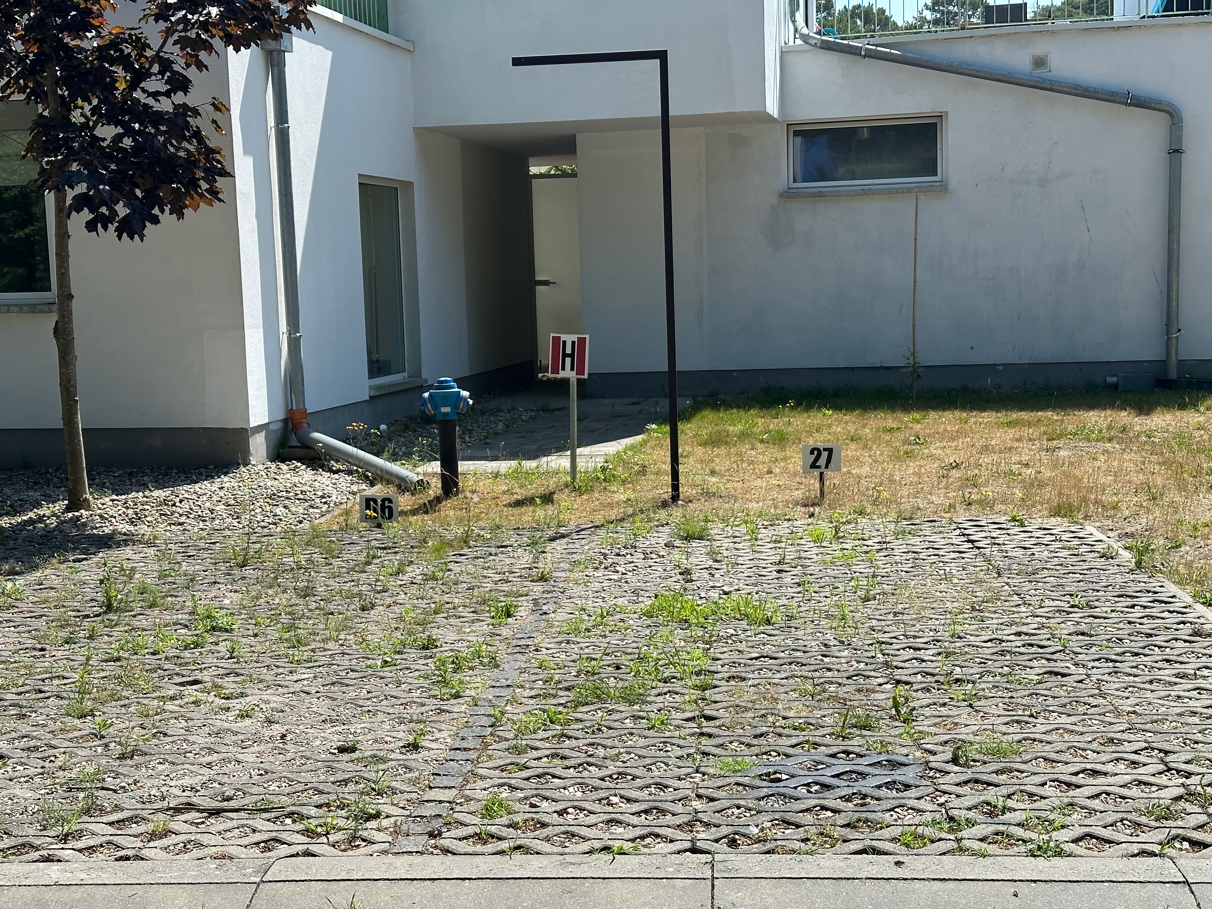 Ihr Parktplatz ist der erste Parkplatz in der Reihe vor der Wohnung.